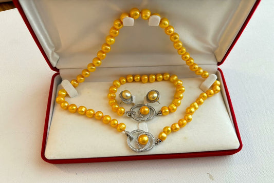 Genuine freshwater yellow pearls jewelry set