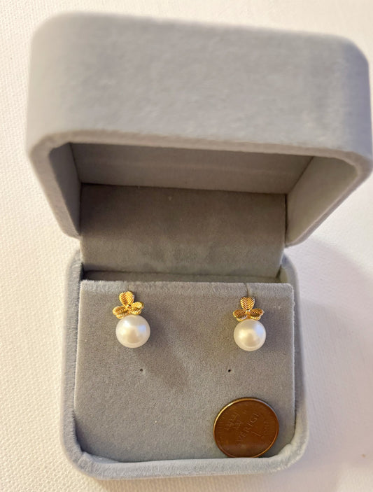 Genuine 18k gold with genuine pearl earrings