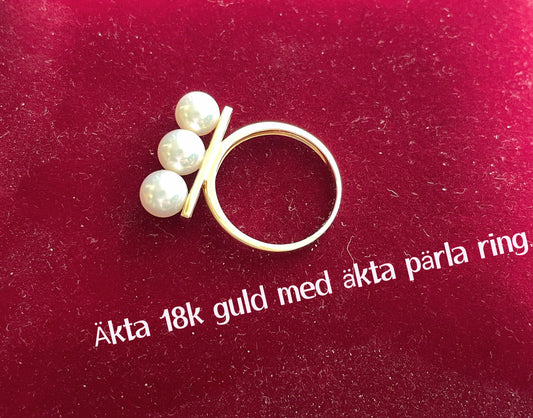Real 18k gold with freshwater pearl ring