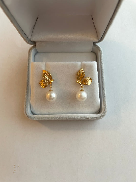 Genuine 18k gold with real High Quality Freshwater Pearl Earrings