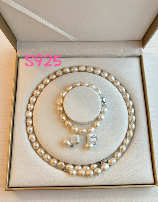 Genuine freshwater pearls with S925 Silver jewelry set