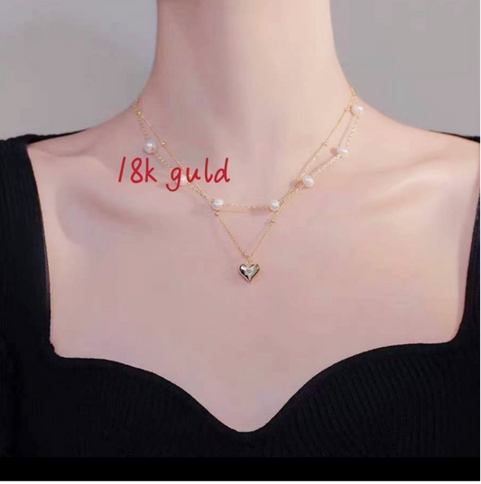 Genuine 18k guld with Freshwater pearl Double Layer nacklace