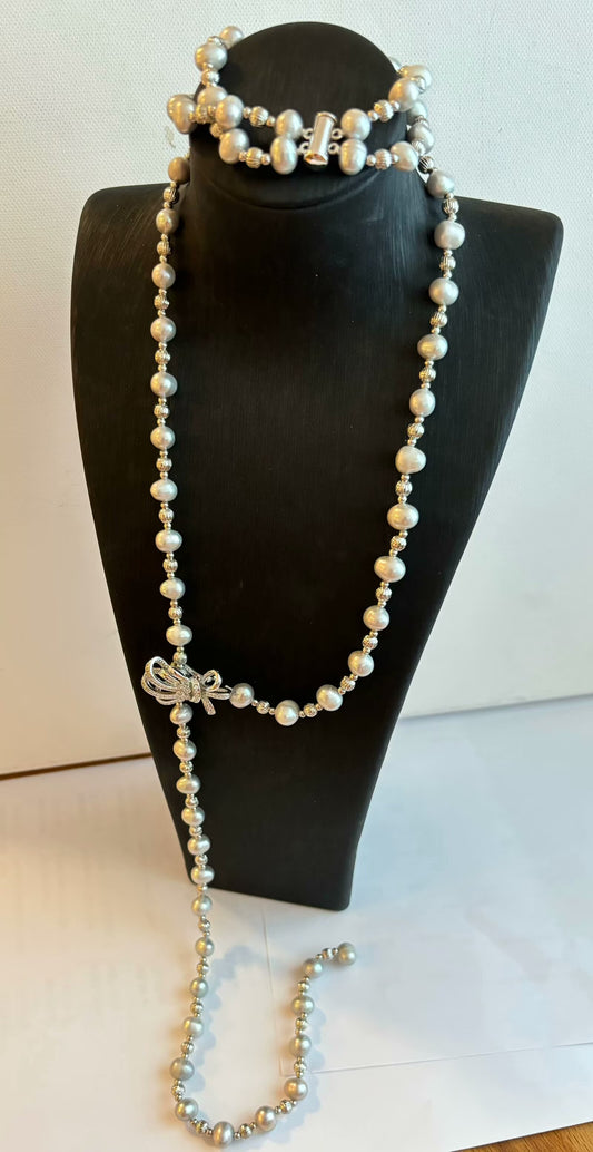 Genuine freshwater Pearls with silver button jewelry set